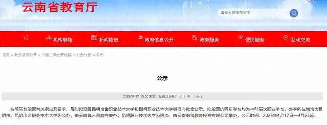 近日,云南省教育厅公示了两所新设置的本科院校,其中的昆明职业技术大学很是神秘,因为很难查到该校的建校基础,省厅也没有公布相关信息,不过既然是说明了是民办学校,那就好办了。
